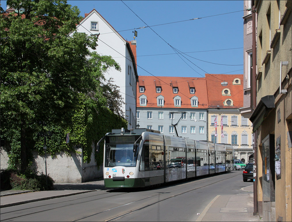 . Combino-Tram 843 fährt den Milchberg in Augsburg hinunter. 26.05.2012 (Matthias)