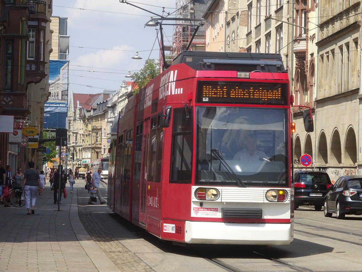 Wagen 621 der EVAG, ein Combino Basic, ist am 19.07.17 auf der Linie 5 unterwegs.